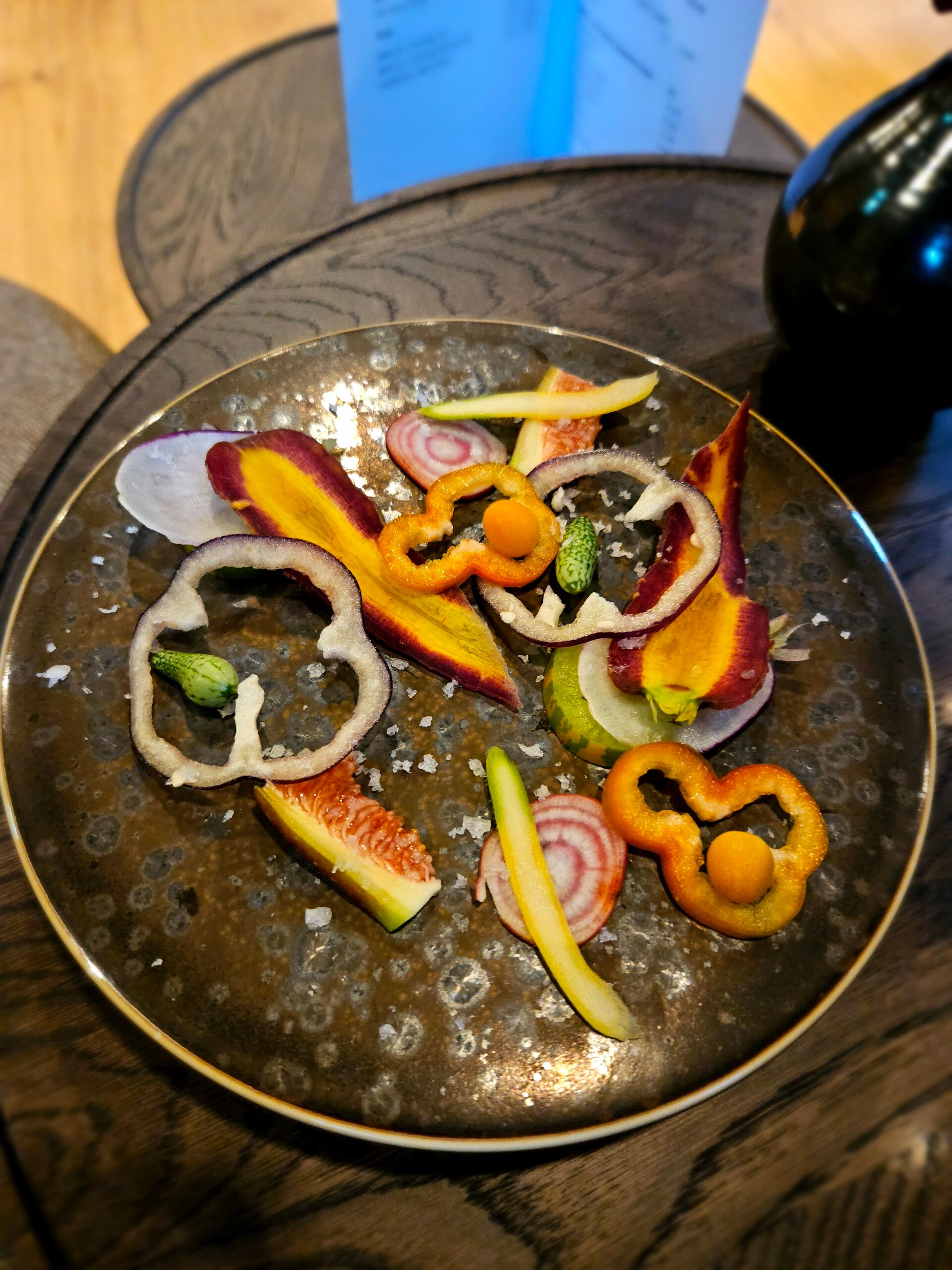Heilbutt-Ceviche, Kopfsalat, Wildkräutersorbet